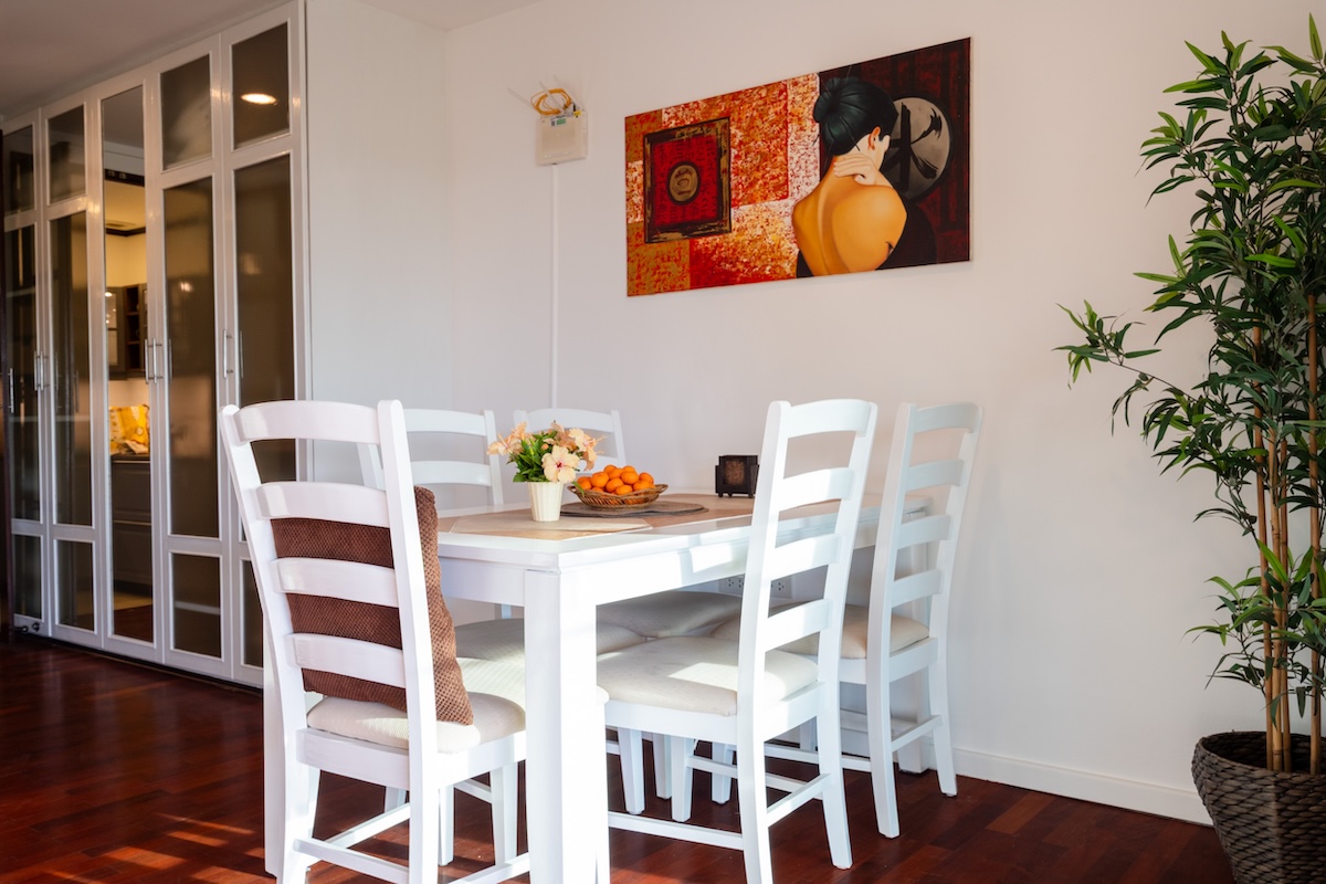 Apartment of 77 square meters on the third floor with a combined living room and bedroom, well equipped kitchen, a bathroom and a spacious balcony facing Klong Dao Beach 250 m away. Elevator in the building to second and third floor.